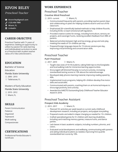 Preschool Teacher Resume Samples Writing Guide Resume Genius